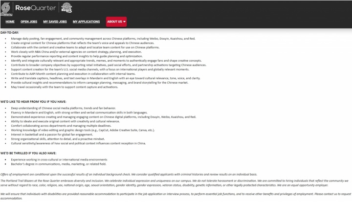 08月08日讯 据开拓者官网信息显示,球队正在公开招募全职中文运营专员。
