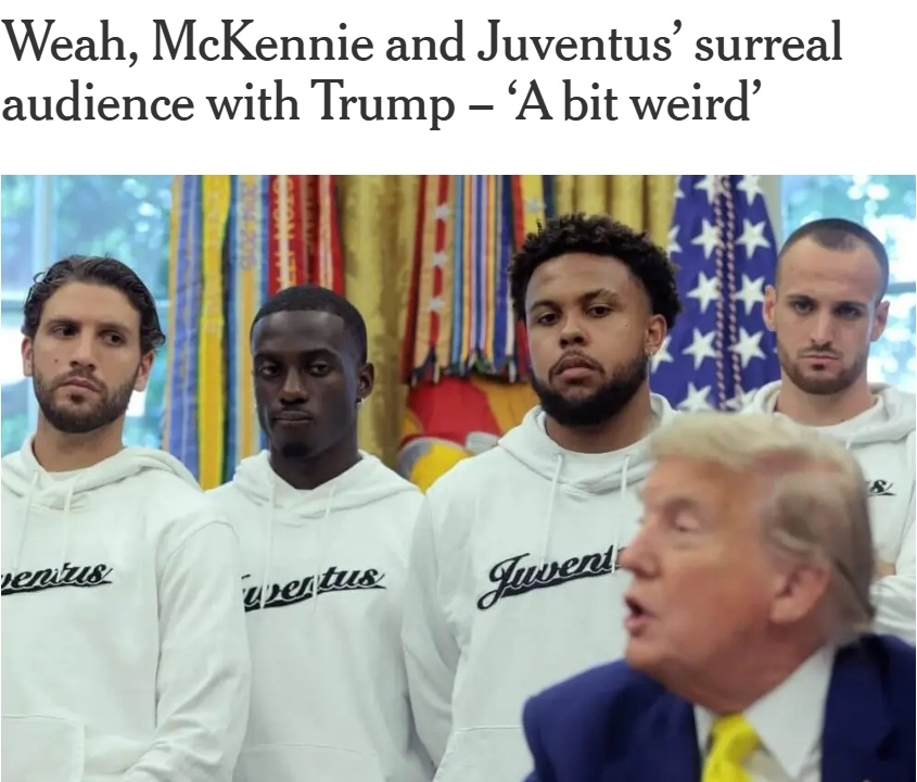 尤文球员蒂莫西-维阿在世俱杯首轮赛后接受采访,聊到了这次经历,维阿表示:“说实话,这对我来说完全是一次意外,他们告诉我必须要去,我别无选择只能去。说实话,我当时很意外,感觉有点奇怪,当他开始谈论伊朗的政治和其他话题时,我的感觉就像,我只想好好踢球。”
