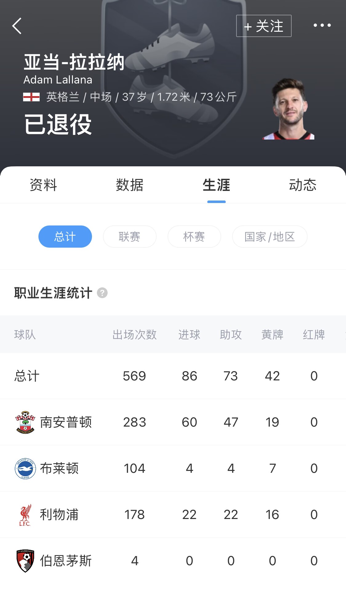 06月25日讯 37岁前利物浦球员拉拉纳宣布退役,结束19年职业生涯。