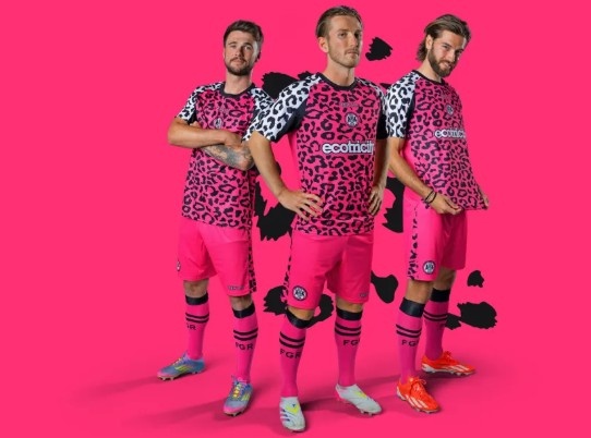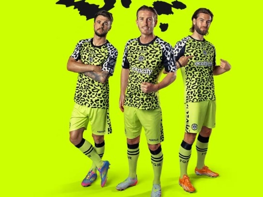 这支以环保理念著称的球队在降级后继续坚持其大胆且可持续的选择。过去,他们曾推出过竹制和咖啡渣制成的球衣,今年更是推出了世界上首款全素食球衣。这款亮黄色和粉色的球衣采用豹纹设计,完全可回收,并在领口处有三颗星,象征着俱乐部希望晋级至英冠联赛的愿望。