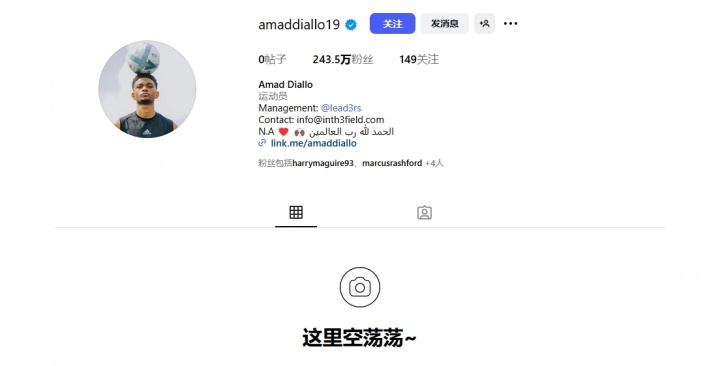 为此,阿玛德清空了账号上的所有内容,曼联工作人员在周一关注了他的心理健康情况。